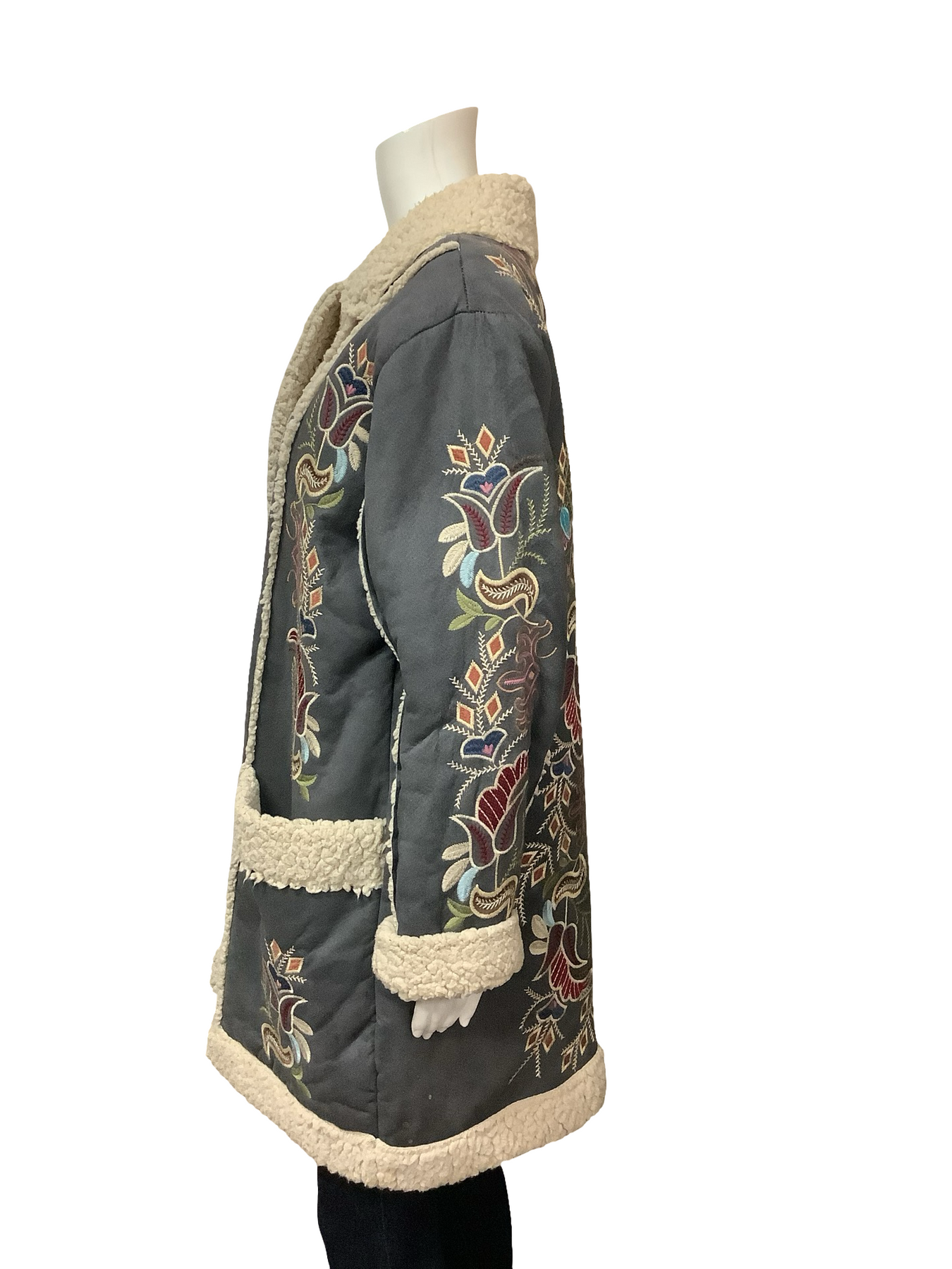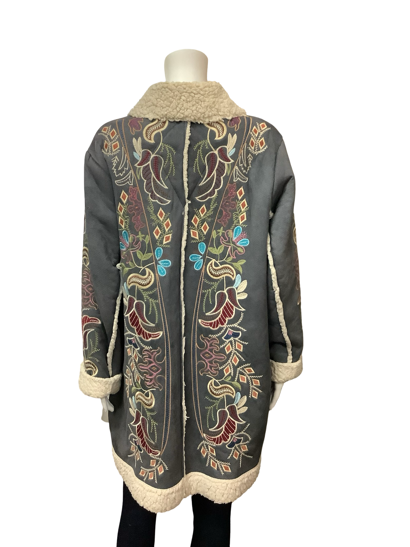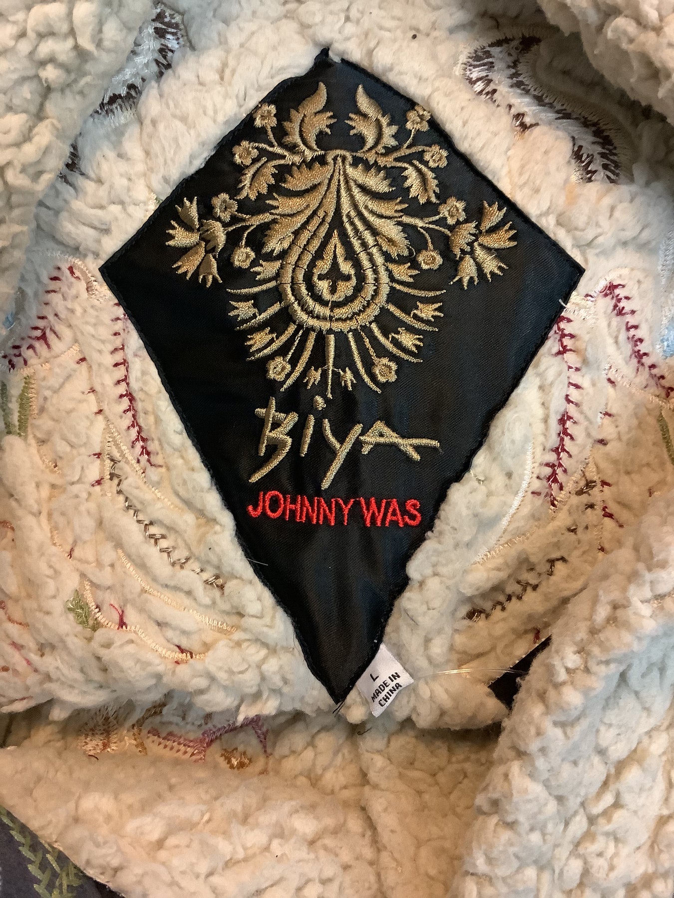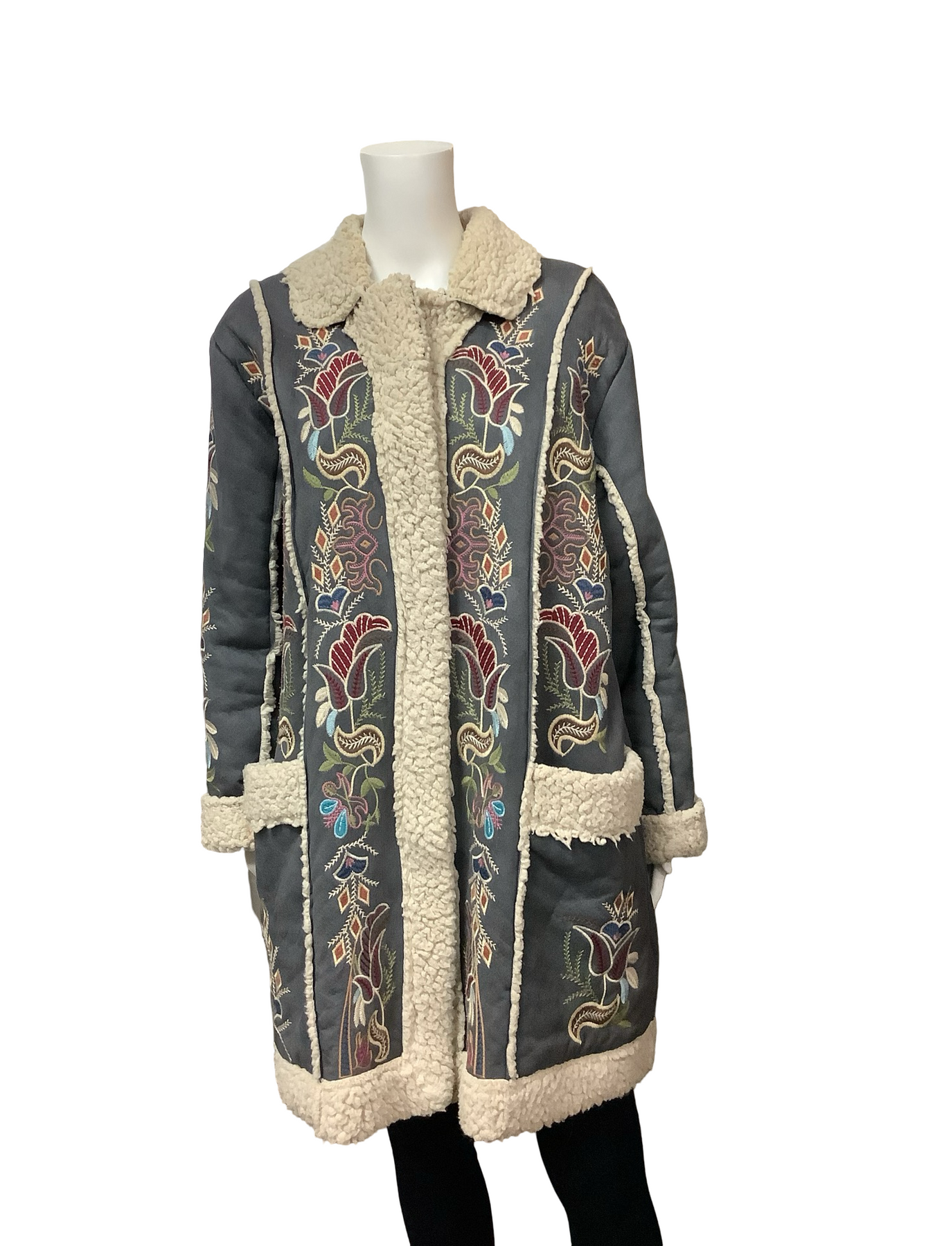 Johnny Was Sherpa Floral Embroidered Coat Size: L