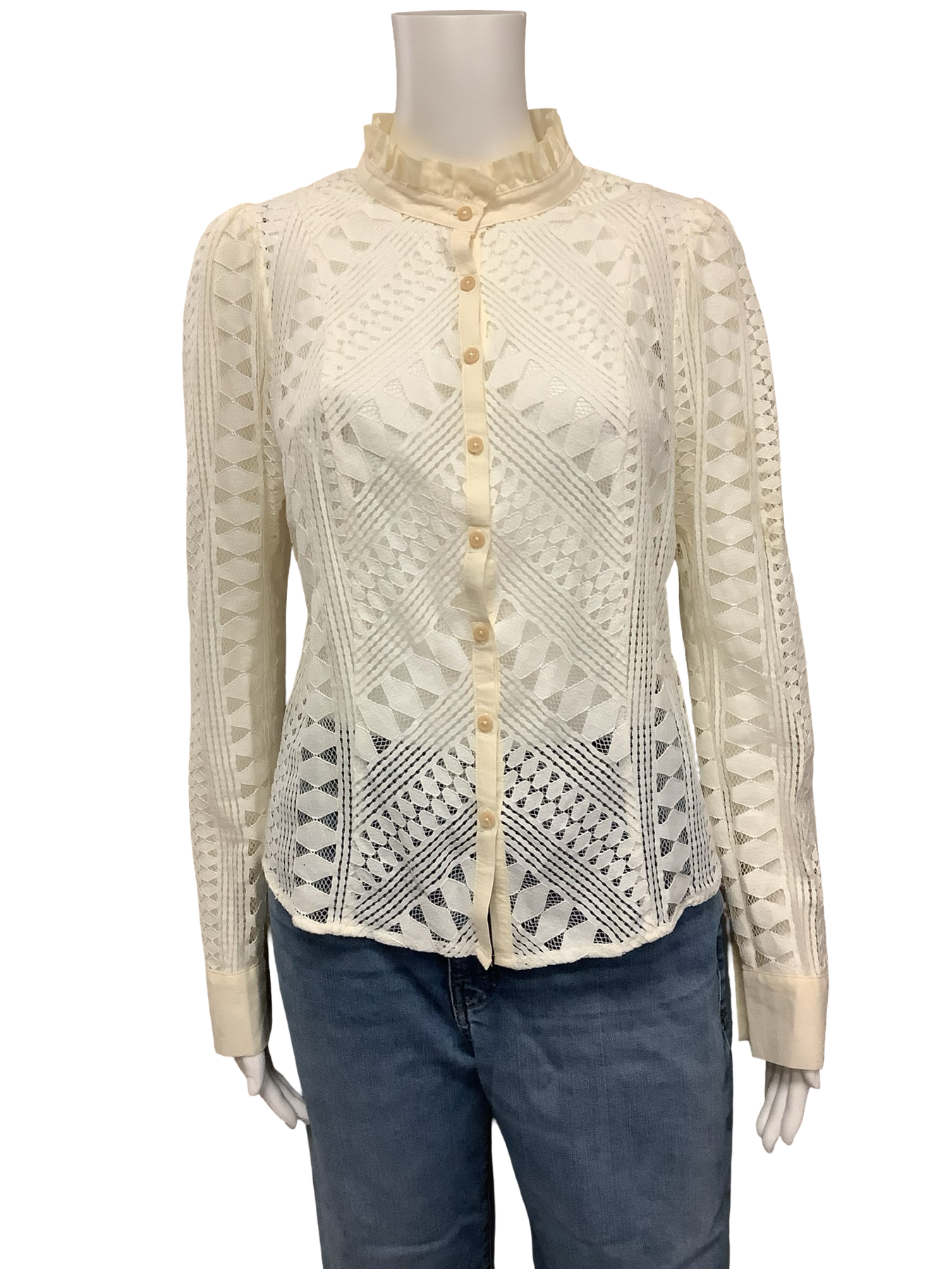 Anthropologie Long Sleeve Lace Pattern Blouse Size: M/ US 8