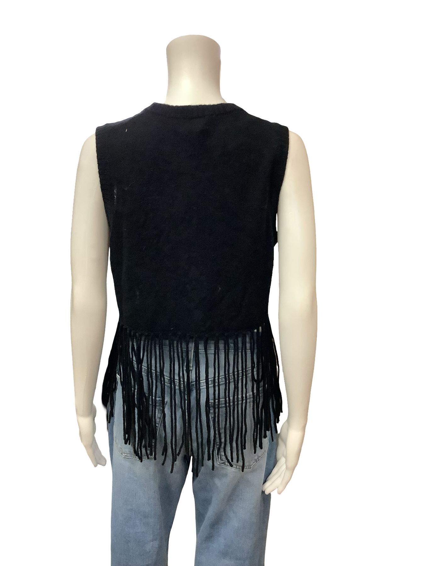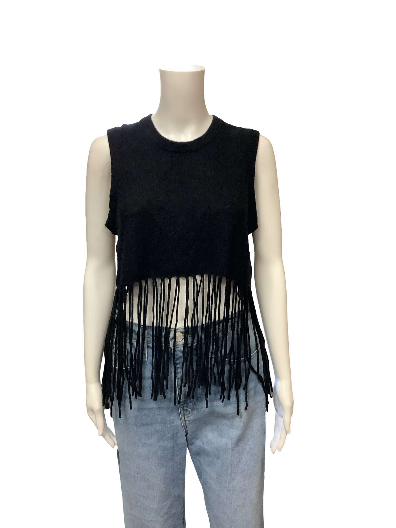 Minnie Rose Cashmere Fringe Crew Neck Sweater Vest Size: L