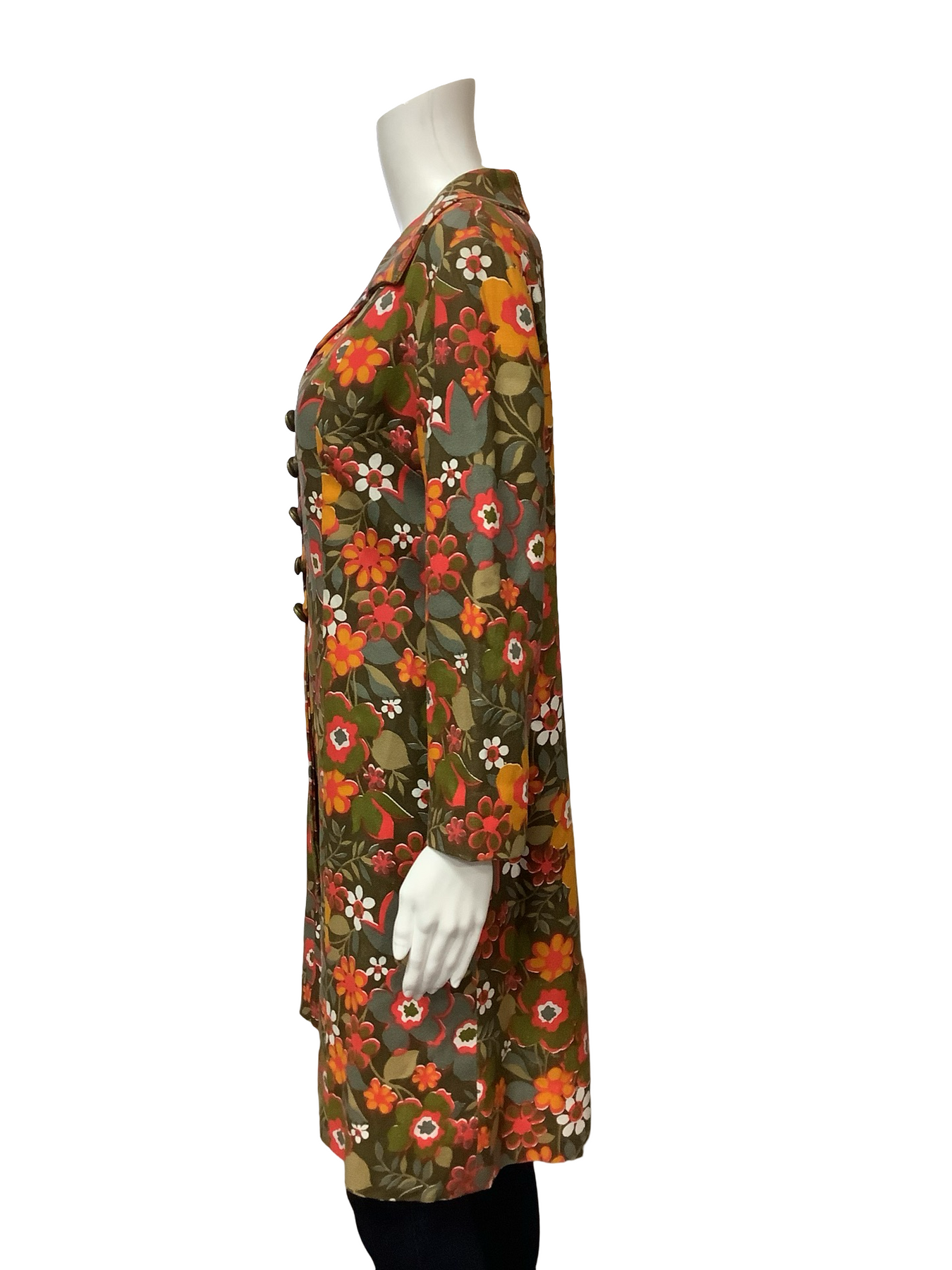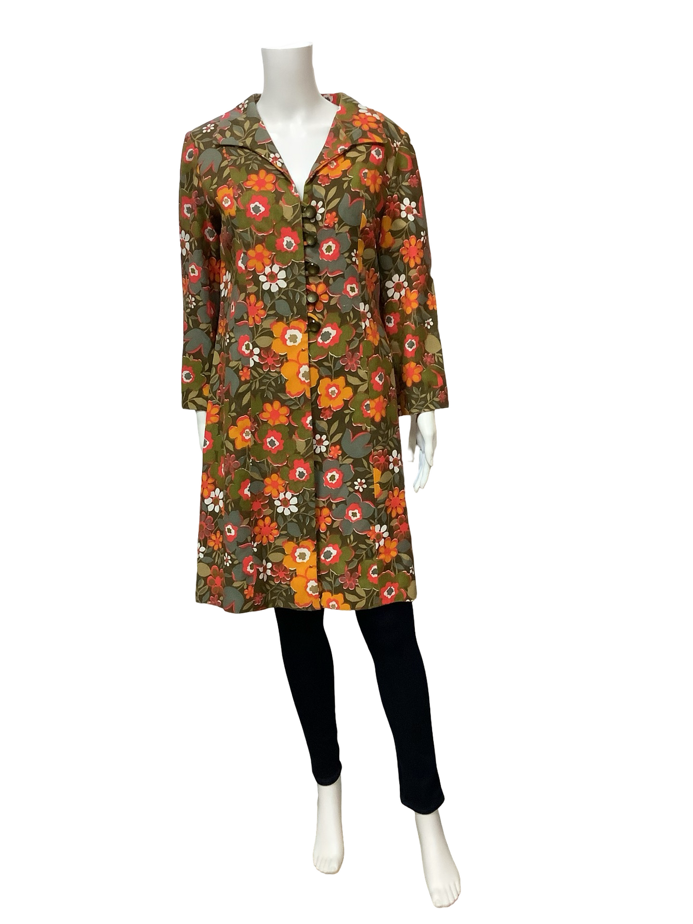 Vintage Linen Floral Print Long Coat